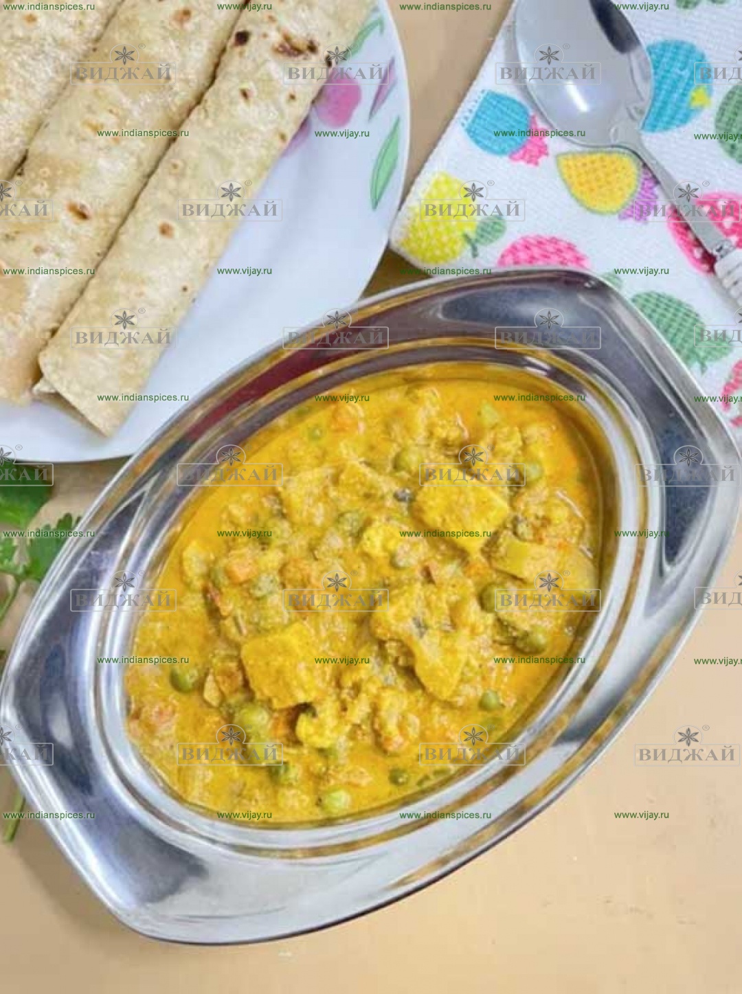 Корму из смешанных овощей можно подавать с паратхой, роти, нааном. Она также хорошо сочетается с рисом на топленом масле и рисом на кокосовом молоке.Время приготовления: 45 мин.