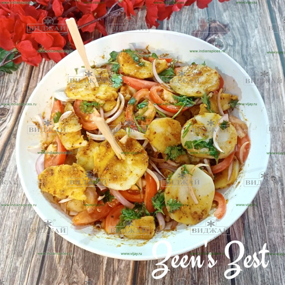 картофель, соль, растительное масло, семена пажитника, семена кумина, семена фенхеля, семена горчицы, куркума, хлопья перца чили, гарам масала, чат масала, рисовая мука