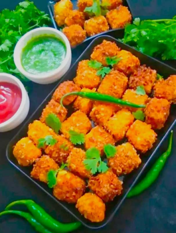 Панир готовят, обваливая его в специальных специях и овсяных хлопьях. Вкус становится ещё ярче, если подавать его с кисло-сладким чатни.