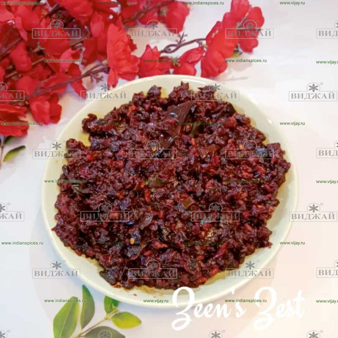 свекла, кокосовое масло, семена горчицы, листья карри, свежий зеленый чили, корень имбиря, чеснок, репчатый лук, куркума, молотый кориандр, соль, натертый кокос