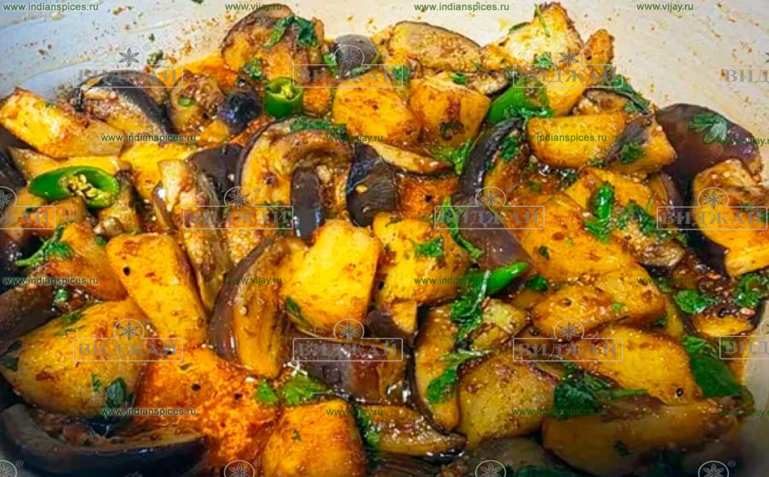 картофель, баклажан, тыква, зеленый горошек или стручковая фасоль, масло гхи, семена горчицы, сушеный целый чили, лавровый лист, семена пажитника, семена аниса, молотый кумин, вода, сахар, соль, лимон, петрушка