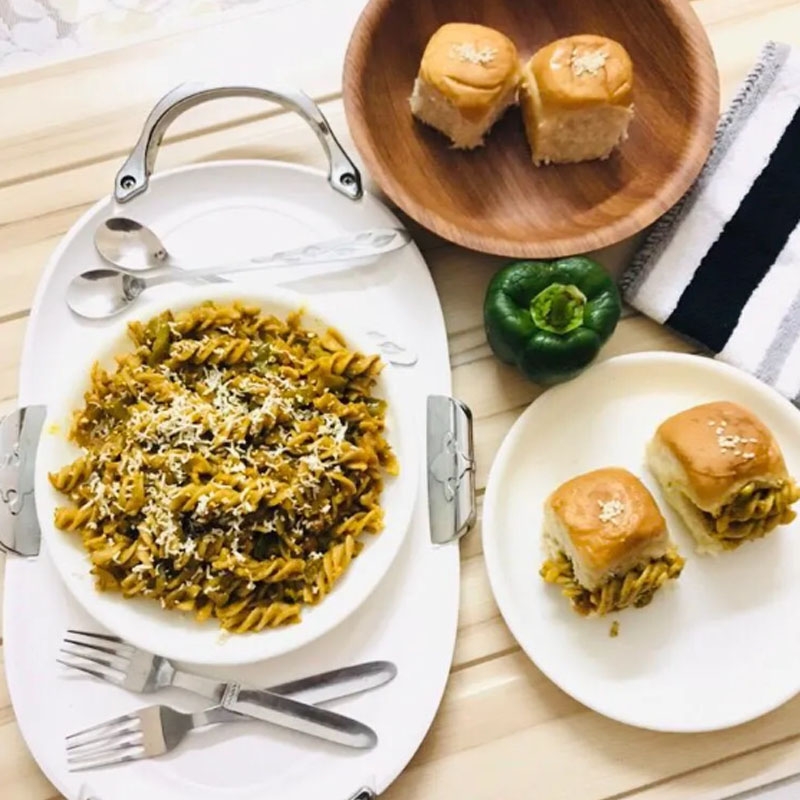 Посыпьте эту восхитительную пасту фузили со вкусом пав бхаджи большим количеством тёртого сыра.